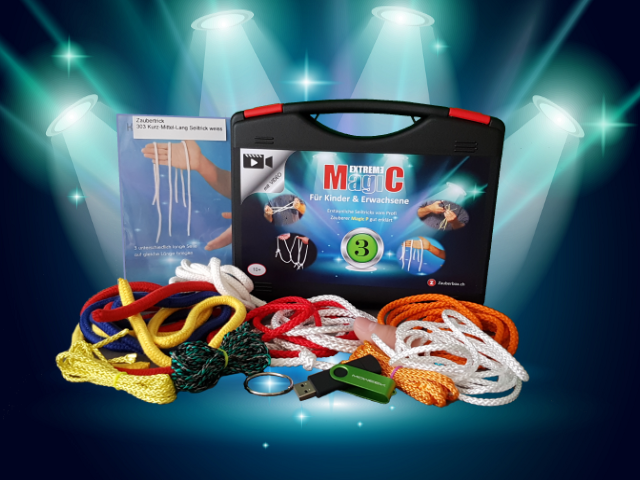 speziellen Zauberkoffer mit raffinierten Seiltricks zusammenzustellen, die